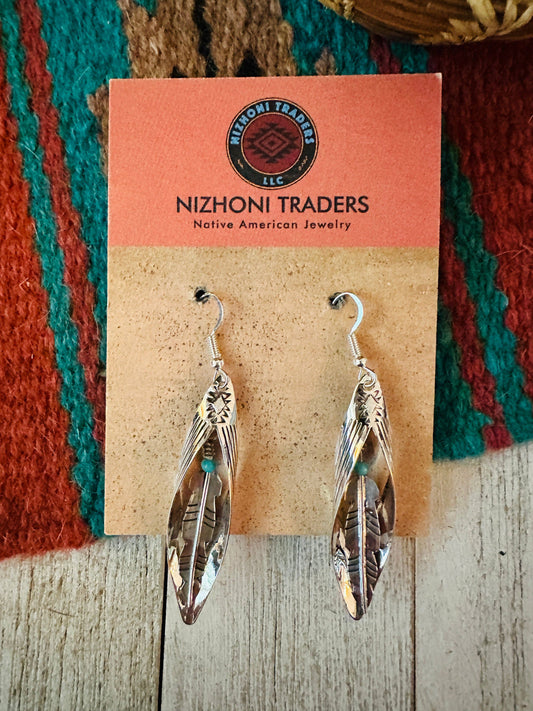 Turquoise & Sterling Silver Feather Dangle Earrings