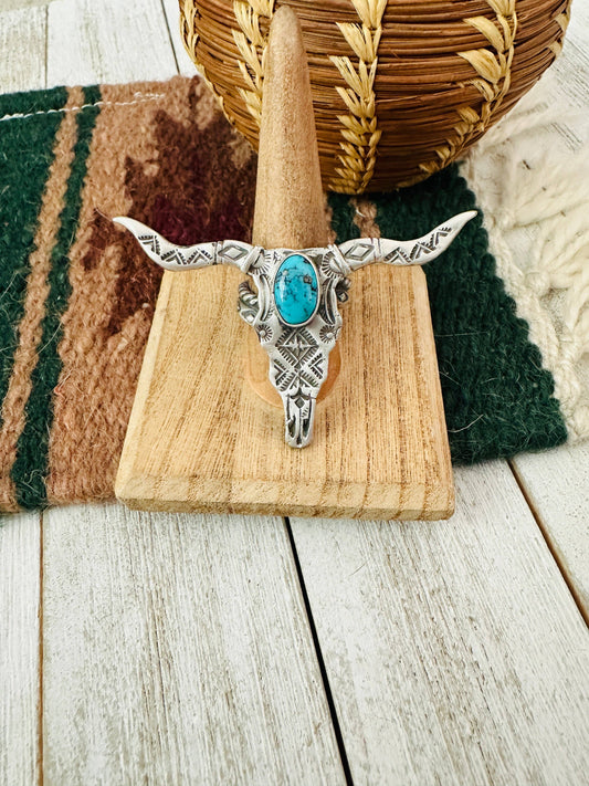 Navajo Turquoise & Sterling Silver Bullhead Adjustable Ring