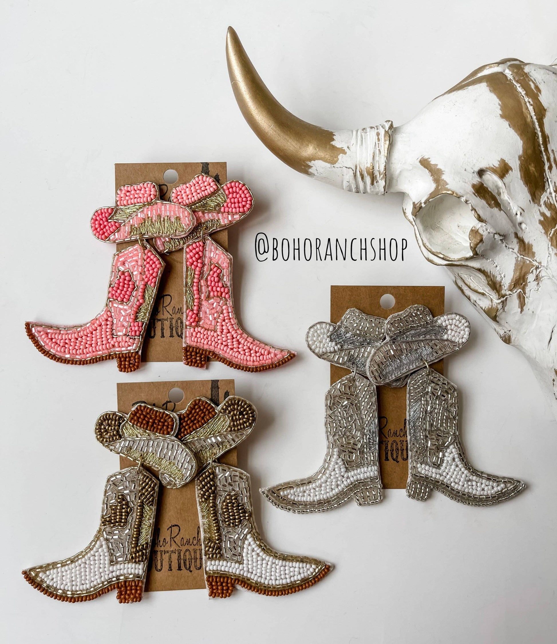 Beaded Cowboy Hat Boots Earrings - Brides, Bachelorette