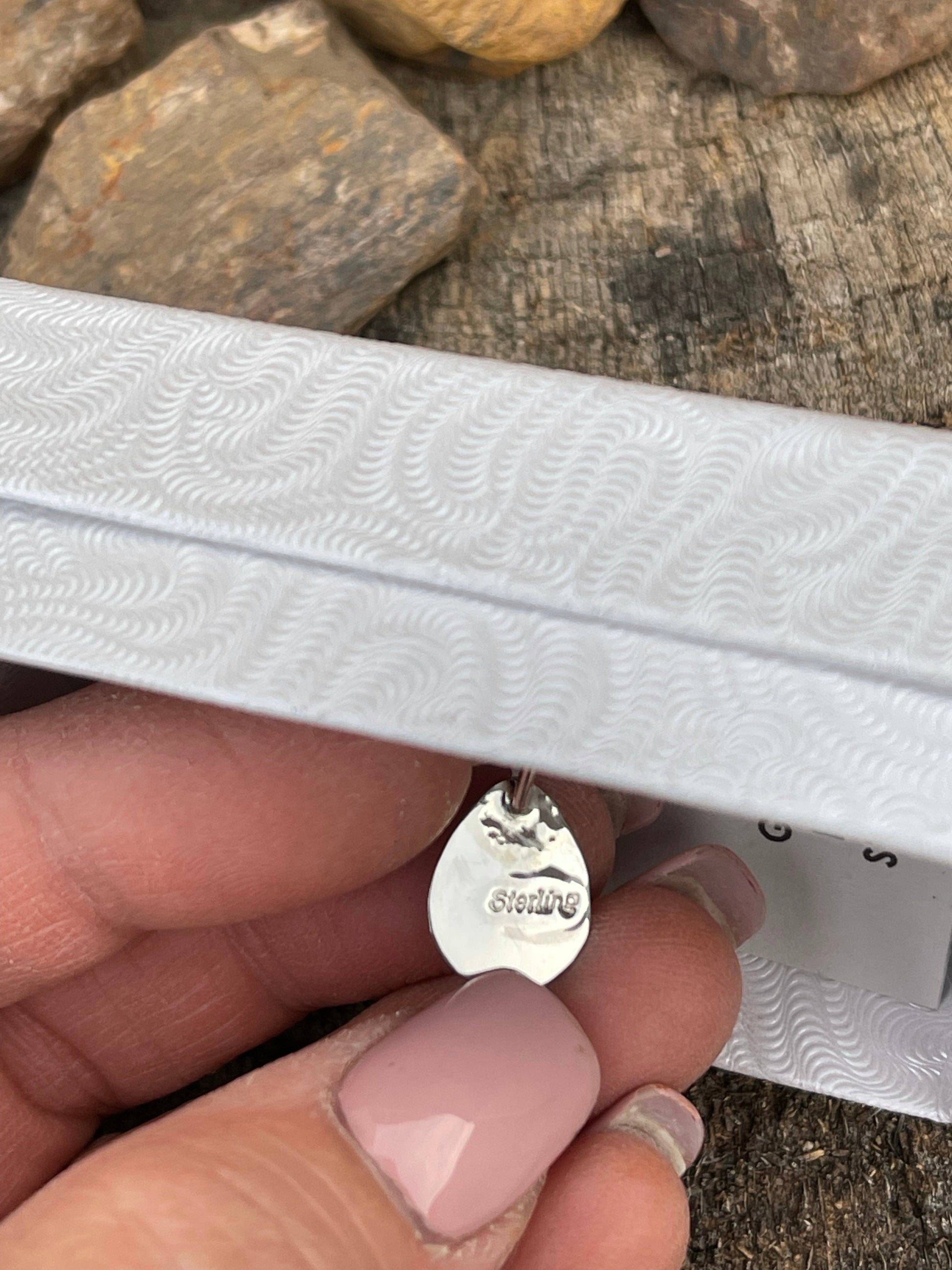 Loving this SWEET Sterling Silver Turquoise Bear Paw Design Set. These amazing pieces are such a find. Bear Paw Turquoise Sterling Silver Pendant and Dangle Earrings . Turquoise Bear paw Pendant is 3/4 of an inch long and 3/8 of an inch wide. Dangle Earrings are 1/2 of an inch wide. Signed.