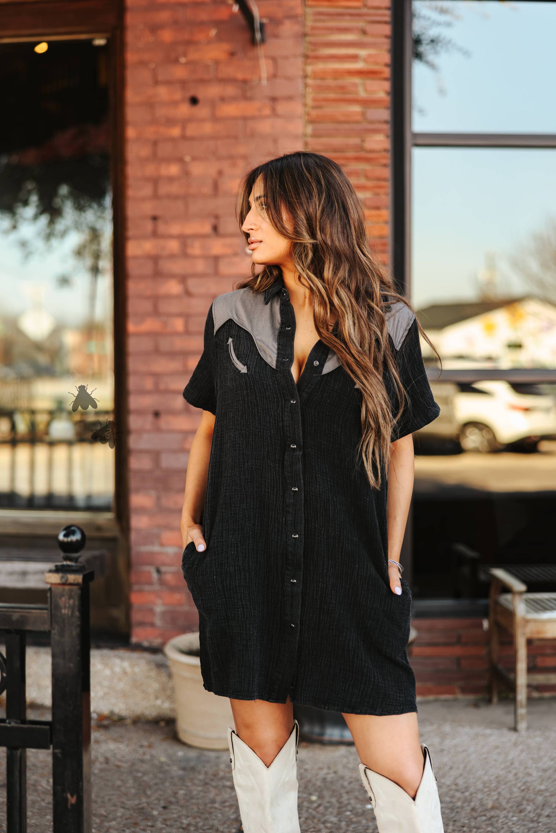 The RANK RETRO *MIDNIGHT by 2 Fly Co is a unique blend of western and weird. This women's button-down shirt is an original design, hand-drawn to ensure a unique style that stands out. Made to be inclusive, it's available in sizes ranging from XS to 3X. This piece is not just a trend, but something you'd want to keep for generations. Join the 2 Fly Co family and stay fly with this timeless piece.