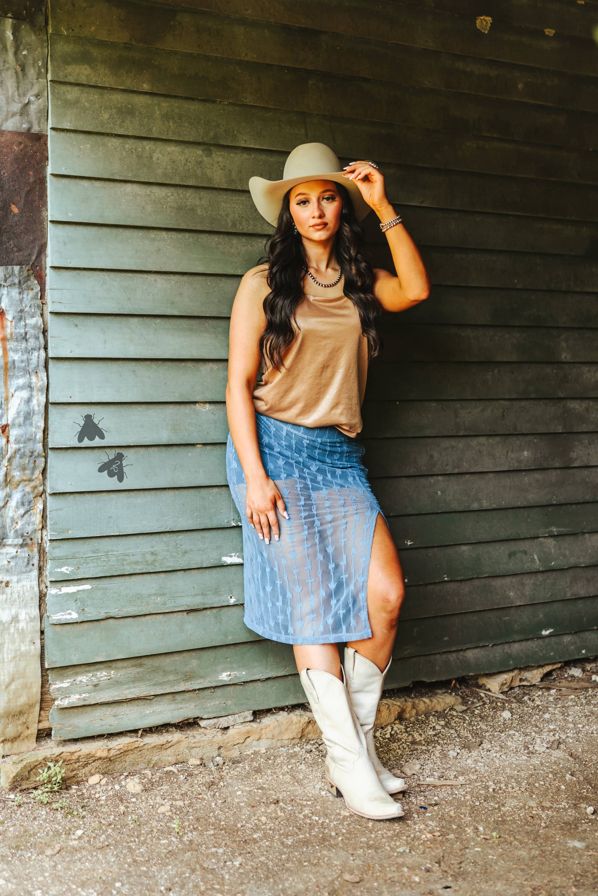 Step out in style with the Southern Draw Denim Skirt from 2 Fly Co. This skirt is a perfect blend of Western and unique fashion, making it a versatile addition to any wardrobe. With its comfortable fit, it's designed to last. From day outings to evening get-togethers, this skirt is sure to make you stand out. So why wait? Add this unique piece to your collection and stay fly with 2 Fly Co!