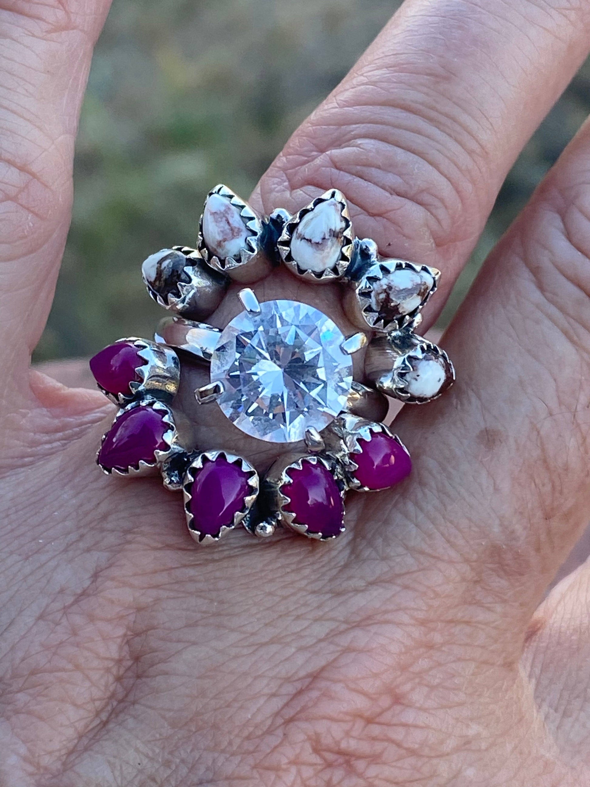 Gorgeous Wild Horse and Sterling Silver Monarch Band. Such amazing craftsmanship! Signed Nizhoni and stamped Sterling. Measures just over 1/4 of an inch wide. Listing is for only one ring Diamond is not included.
